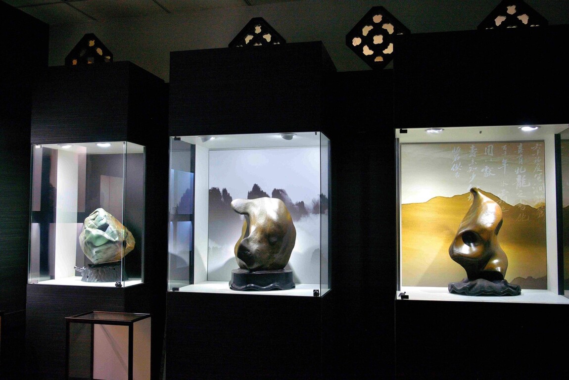 由於他在台湾雅石界全盛期就已进入石界,也在早期就穿梭于两岸石坛间寻石、交流,大进大出,收藏广泛而多元,尤其在赏石艺术的研究与探讨,有其卓见与成果。