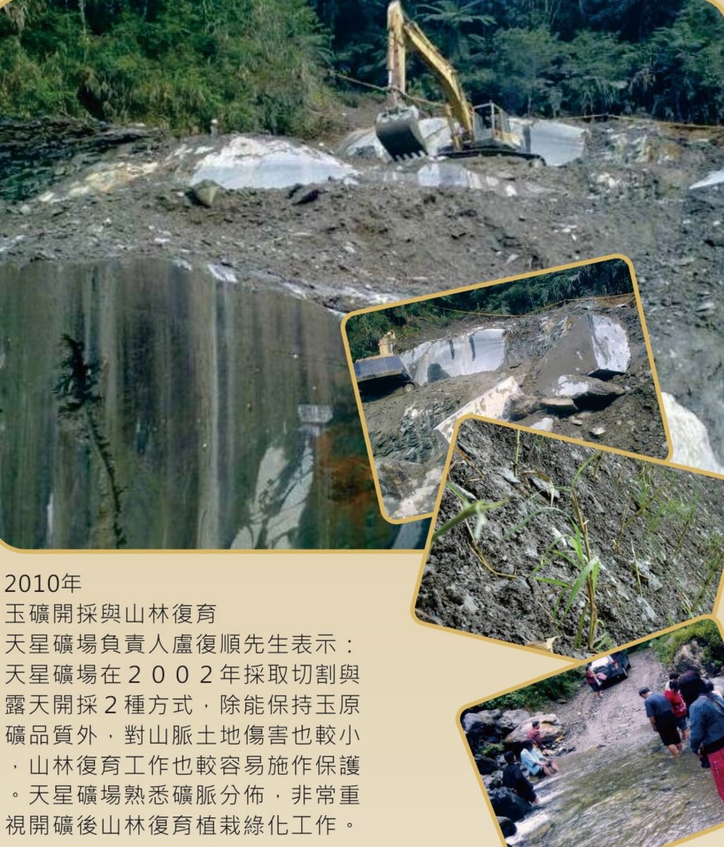 名闻遐迩的台湾丰田玉,曾经极度繁华,这历史虽短暂却极富传奇,1965至1975年间,是台湾玉生产销售之全盛时期,每年平均开采约1,600吨左右,花莲丰田地区於是有「东部小九份」的别称。丰田玉带动台湾半宝石的加工技术与商业贸易,全省加工厂最高曾超过800家,直接或间接从事玉石业人员曾高逹5万人以上,盛况空前,台湾加工生产的玉石数量占当时全世界约80%左右,每年平均销售金额约新台币50亿元,台湾玉因而扬名全世界,使台湾成为世界珠宝加工及出口王国。