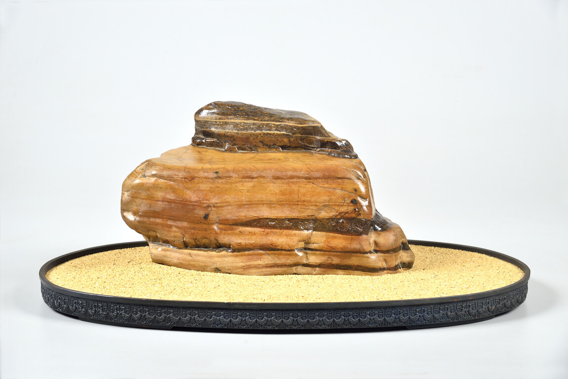 (一)形态变化多,体形大而不笨,层纹清新,凹凸有致,有山峰、平台、沟谷等,把大自然的壮丽景观尽收石中,形成耐人遐想的景观;