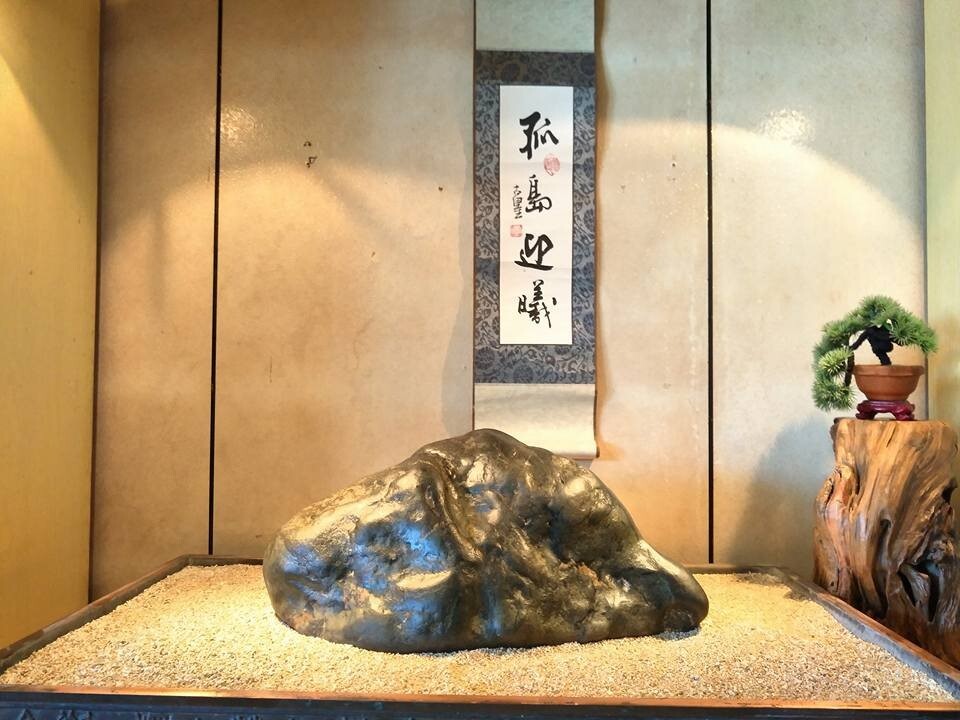㬌观类,石为碧绿色,带点洒金黄,古老朴实,变化石肌纹路,远山全面㬌,主峯穏定座中,左右均衡,山峦起伏变化均,中间部有自然山沟呈现,而四平八穏座在海上,(孤岛迎㬢)每曰以自然界共享共存!显现意境陶醉,使人向往密探圣地~~~