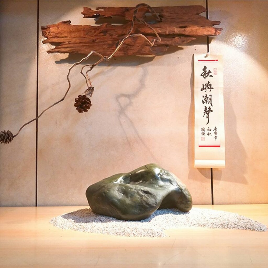 (秋屿湖声)㬌观湖山形,环山抱湖气势非凡,石肌光优湖潭虽浅,湖形正中深具美感,此作品为湖山形景观石中理想的名品!