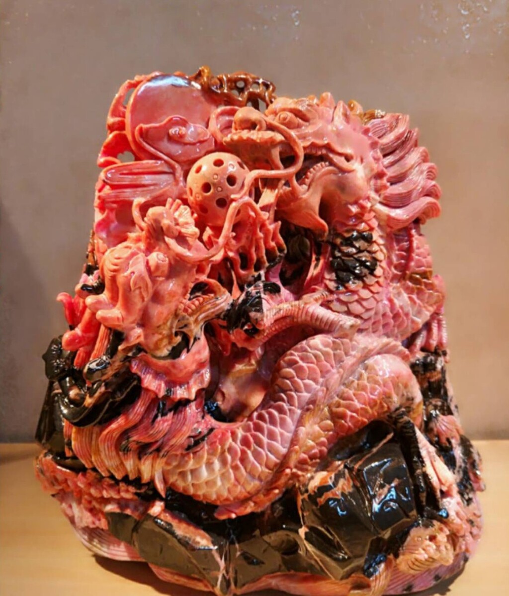 一颗山矿原石,经名师设计塑造镂空细雕,呈现一件非常漂亮的收藏品。