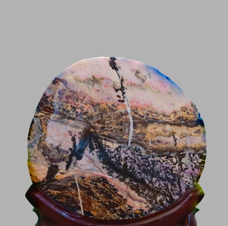 玫瑰切片石画,一件原石切片呈现山水画,画中如诗如画,自然界创造的奥妙,非常神奇。