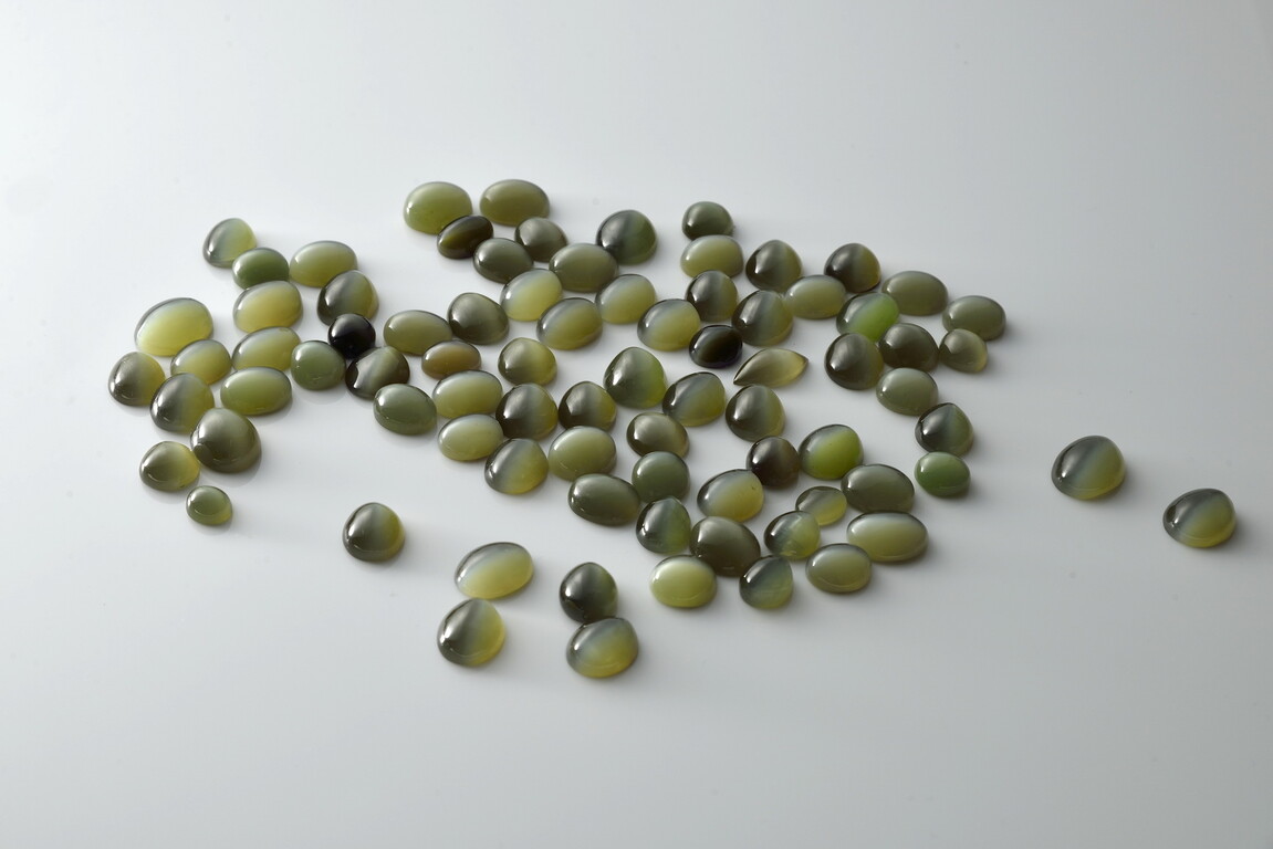 「猫眼玉」(会闪的玉)是最奇特的台湾玉。原矿经过抛光打磨後,加以正确的切割及精密的研磨,中间会出现宛如猫眼状细长、闪亮的光芒。