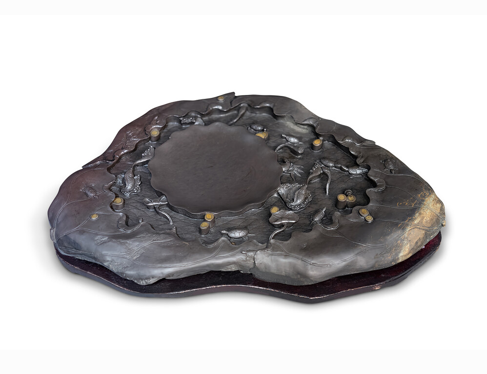 螺溪石质温润、色泽迥异,有墨黑、灰褐、靛青、黛绿、枣红诸种,内涵精致,光泽细腻、不染砂尘、易於发墨、不损毫端且贮水不乾、严寒不冻、洗净便易。