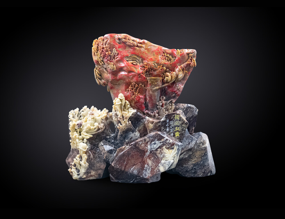 鸡血石多出於浙江省昌化县深山的石隙中,极不易得。当地地层中的金属矿物经地质变化、高热氧化融入石中,淡色石质中掺入殷红色,色泽悦目、鲜红如血。又因「鸡」与「吉」谐音,故名「鸡血石」,寓意吉祥。色泽鲜丽艳红者称作活血,为上品;呈褐色或暗红者,则谓死血,质较劣。