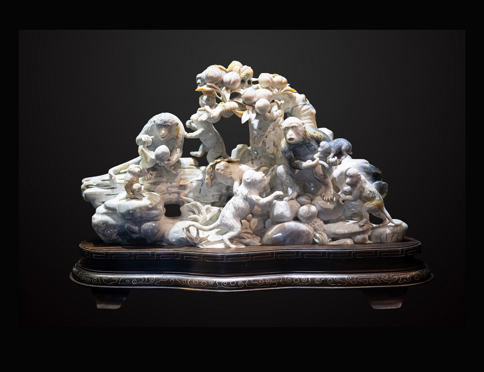 雪花玉的白一般不是十分均匀的白,而有各种不同花纹的变化,并呈渐层式的扩散,如云、如雾,又如雪花纷飞。透明度高,十分亮洁雅致。其外层色泽深暗与内层的雪白,呈强烈对比,很适合作为巧雕的素材。
