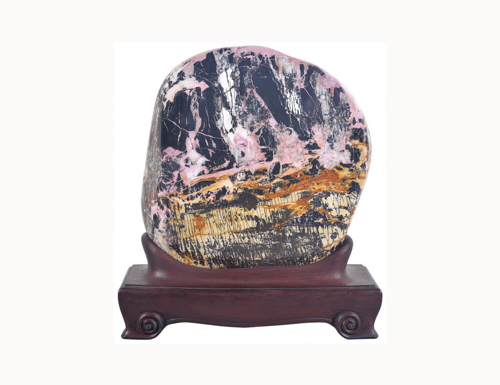玫瑰石产於中央山脉奇莱山系花莲的立雾溪、三栈溪、木瓜溪等三条溪流。玫瑰石矿物学名为蔷薇辉石,其成分在化学上是一种锰矽酸盐类,锰元素常被钙、铁、镁、锌等元素所取代,表皮含氧化锰成分,氧化呈黑色,又因其色彩近似玫瑰花,故玩石者依其色彩命名为「玫瑰石」,纹路变化大常呈现国画山水,属於变质岩。