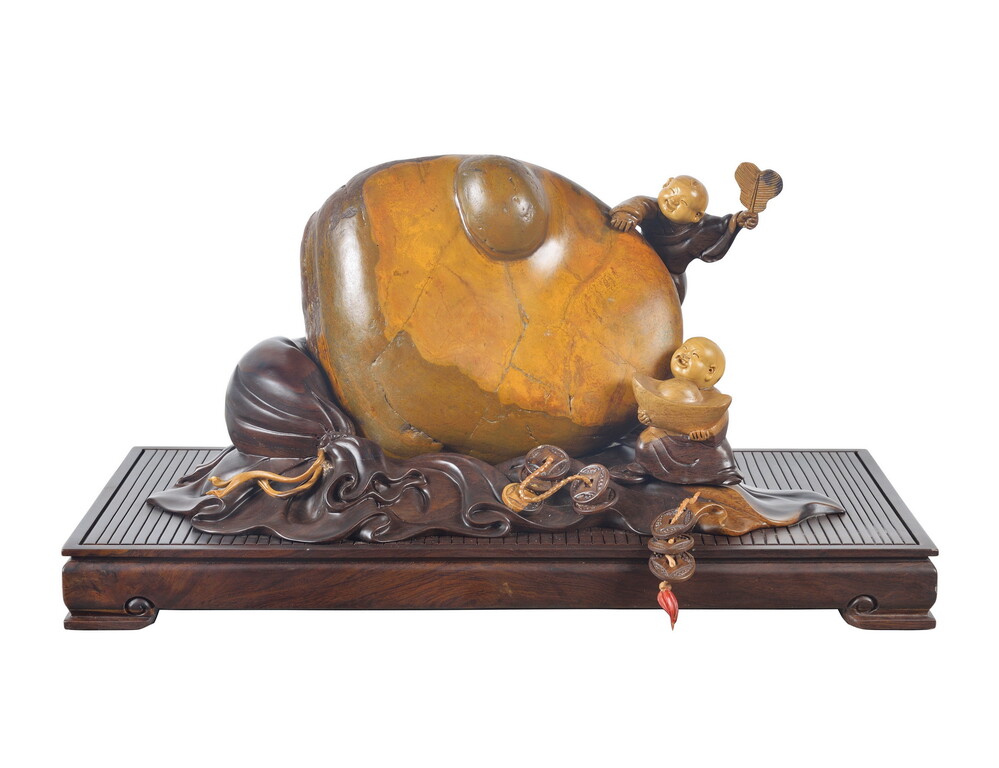 属水冲石类,开发於1997年,色彩古朴,呈金黄、褐黄、棕红、深棕、古铜、翠绿、黄绿、灰绿、陶白等,其成因在於岩石受水中溶解的多种矿物元素如铁、锰离子致色素的浸染所致。