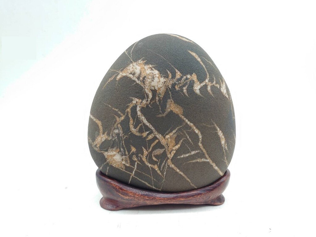 早期友人南田自釆,28年相遇此石购回,此石纹理搭配恰当,变化活泼生动。