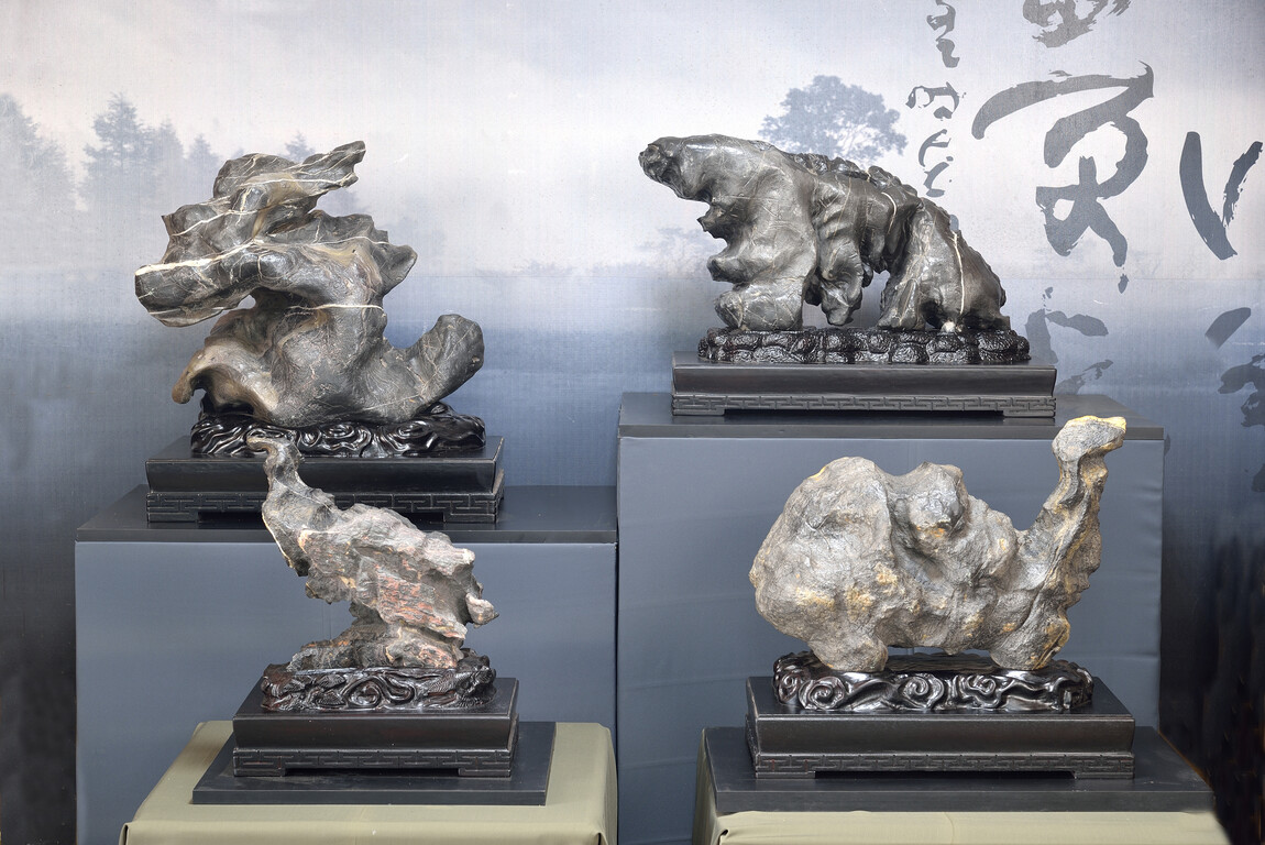 灵璧石质地细腻温润,滑如凝脂,石纹褶皱缠结、肌理缜密,石表起伏跌宕、沟壑交错,造型粗犷峥嵘、气韵苍古。常见的石表纹理有胡桃纹、蜜枣纹、鸡爪纹、蟠螭纹、龟甲纹、璿玑纹等多种,有些纹理交相异构、窦穴委婉,富有韵律感。