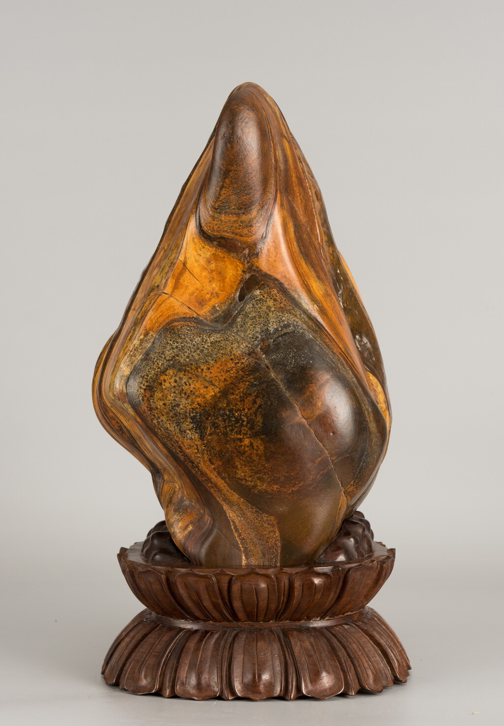属水冲石类,开发於1997年,色彩古朴,呈金黄、褐黄、棕红、深棕、古铜、翠绿、黄绿、灰绿、陶白等,其成因在於岩石受水中溶解的多种矿物元素如铁、锰离子致色素的浸染所致。