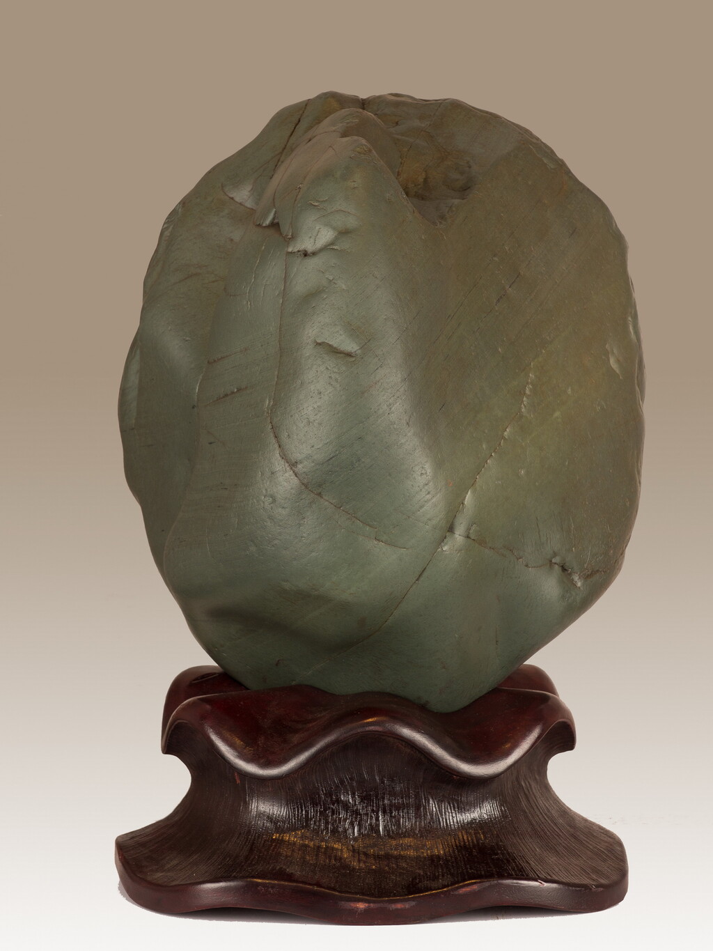 彩陶石,又称为马安石,产于柳州合山市马安村红水河十五滩,有彩釉和彩陶之分,石肌似瓷器釉面称彩釉石,无釉似陶面者称彩陶石。有纯色石与鸳鸯石之分,鸳鸯石是指双色石,三色以上者又称多色鸳鸯石,鸳鸯石以下部墨黑上部翠绿为贵。色分翠绿、墨黑、橙红、棕黄、灰绿、棕褐等色,俗称“唐三彩”。属沉积岩,以矽质粉砂岩或矽质凝灰岩为主,彩釉石多见平台、层台形,不求形异,首重色泽,以翠绿色为贵。现在已近乎绝迹。彩陶石多见象形、景观等状。