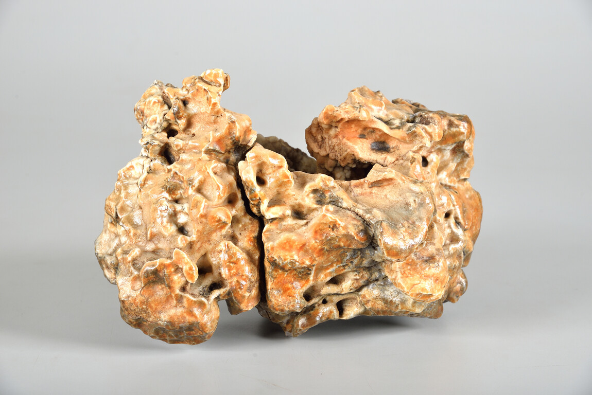 戈壁石主要产於内蒙古阿拉善地区腾格里、巴丹吉林、乌兰布和三大沙漠中的戈壁滩及滩间山坳里,经过长期的地质变迁和日晒风蚀等自然作用,质地坚硬细密,表面光滑圆润,外形千奇百怪,此作如传统舞狮般灵活、生动。