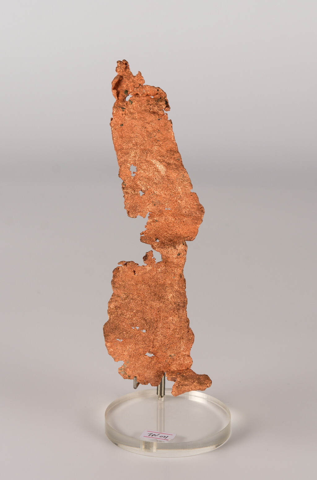 自然铜矿一般呈现不规则的外观,立方体或八面体较为稀有。新鲜的断口是浅玫瑰色的,但由於风化作用,出土的矿石表面常有一层绿色的硷式碳酸铜。(摘自维基百科)