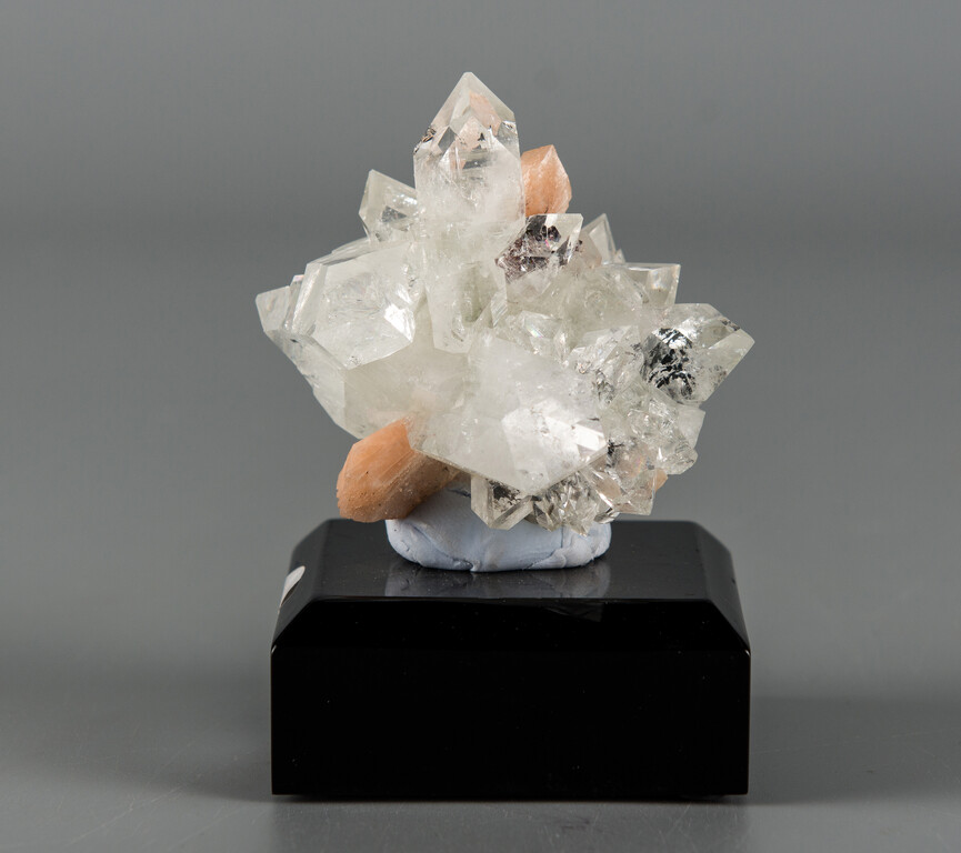 鱼眼石的英文名称Apophyllite系源自「从(From)」和「叶(Leaf)」二个希腊字,是指鱼眼石加热时,会呈叶片状剥离的现象。晶体多呈方柱状,少数为厚板状或假立方体,通常底面具珍珠光泽,柱面则为玻璃光泽,而集合体的外形则多呈块状或粒状。 鱼眼石为一种後火山作用的次生矿物,主要产在玄武岩的孔洞中,常与方解石、方沸石(Analcime)、矽硼钙石(Datolite)、针钠钙石(Pectolite)、辉沸石(Stilbite)、钠沸石(Natrolite)等共生。