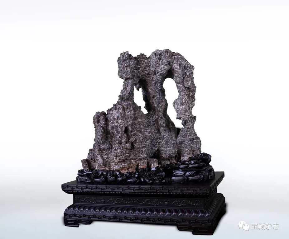此石动静合一,虚实相衬,既有群峰辉映,连绵之势,又见孤岛独韵,自立之美,千变万化,移步成景,令人心迷。