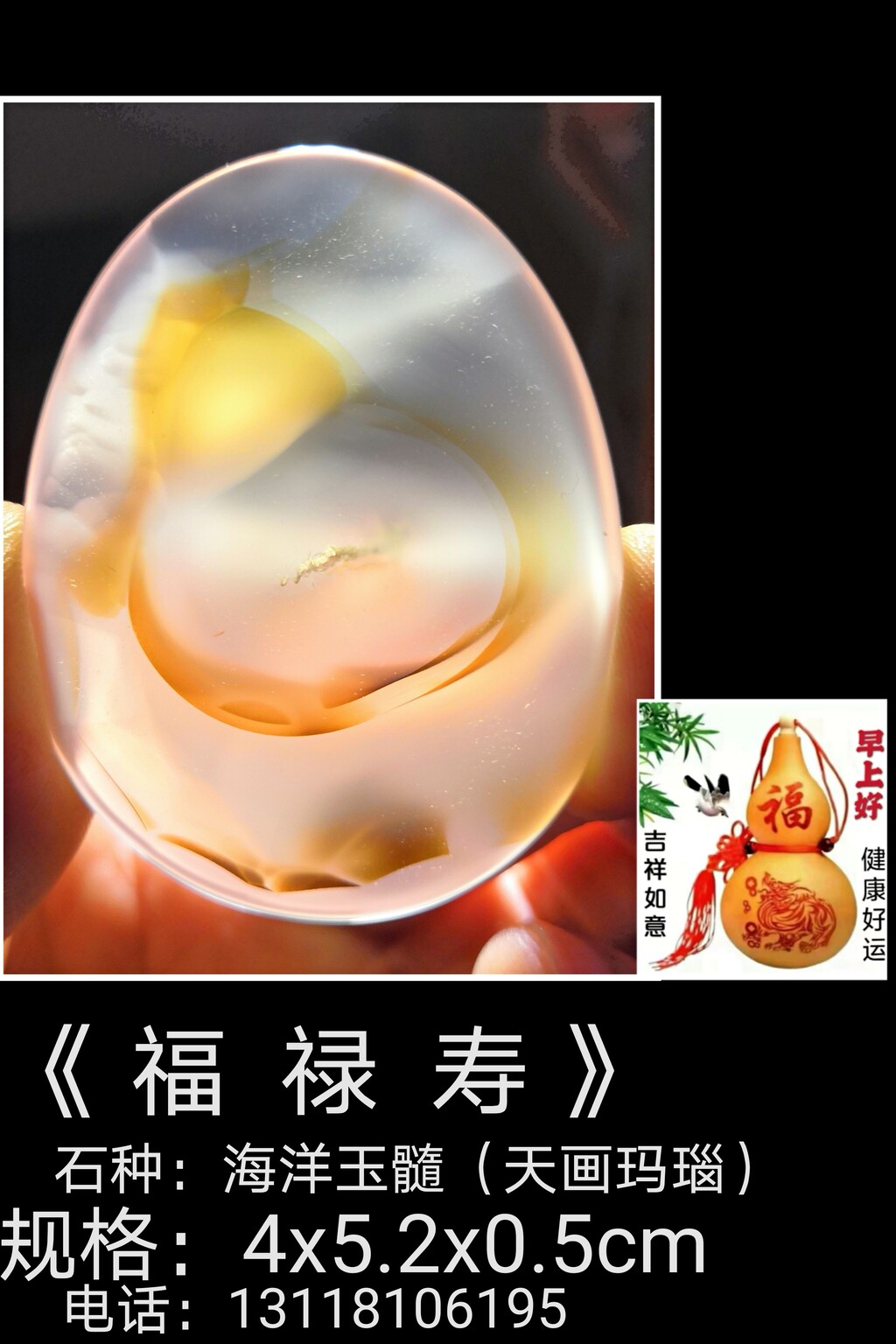 海洋玉髓,简称海玉,是一种具有丰富色彩、花纹、图案的珍惜玉石。主要成分为二氧化矽具有优质玛瑙属性,均含有天然色彩、花纹和图案。海玉质地温润、通透丰富的色彩、花纹、图案被广泛在奇石收藏领域,每一块海玉都独一无二,或是花鸟虫鱼风景,或是英雄美人典故,或是天地大道传説,其中不乏栩栩如生、惟妙惟肖的作品。