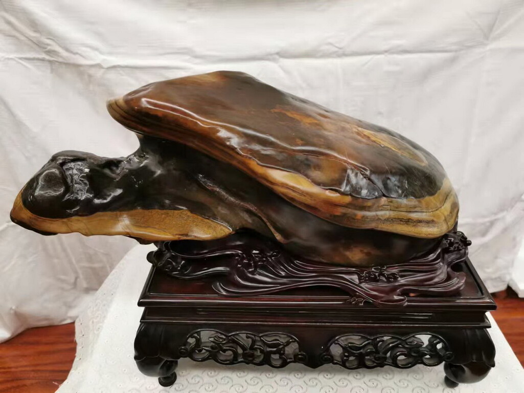 2005年,中国当代着名文学家贾平凹是这样评价这方“寿龟”的:“见到这块石头,连三岁小孩都认得出来。但这只龟没有缩头,没有隐忍,静寂的他背状如驼千斤,头颈长伸,做努力状,这是负重龟。龟常常象徵长寿,若总是那麽一动不动的伏着,像一块石头,那长寿还有什麽用呢?这如人爱读书为雅,什麽事都不做,就是坐在房中读书,只读书,读死书,还算什麽雅呢?上帝造人就是让人在工作,来创造的呀!俗话说:仁者寿,仁就是对生命的最大圆满,那麽这只龟就长寿,变成了石头寿而无疆。”