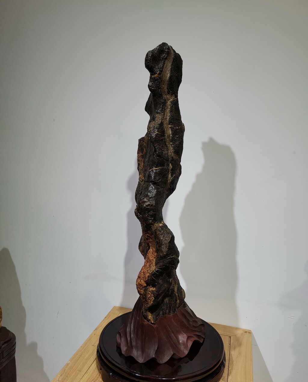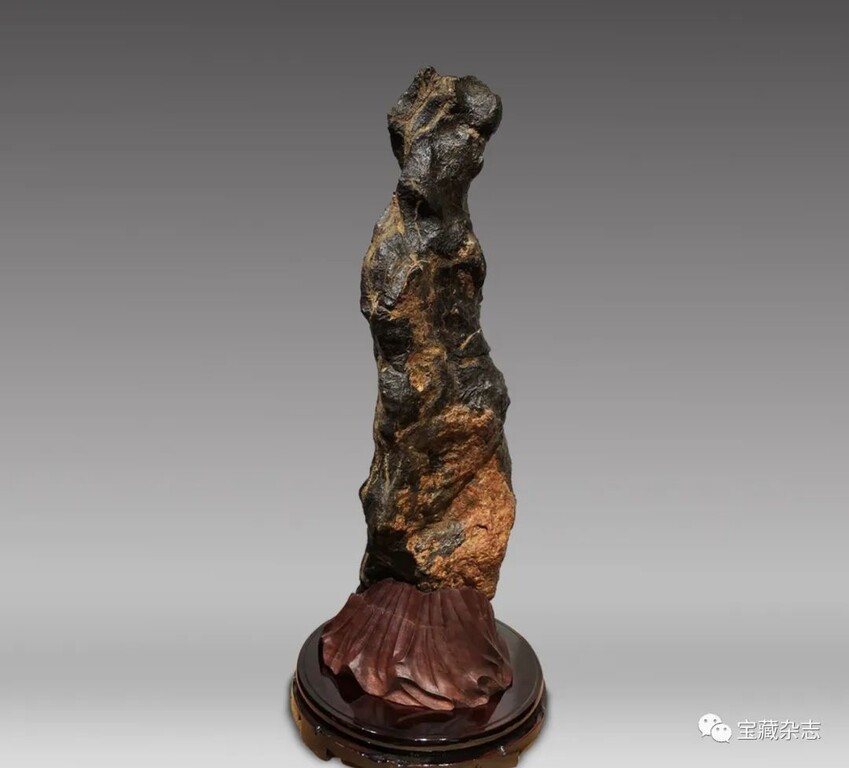 此方奇石作品质地坚硬,扣之声音清脆,石肤漆黑,纹理凹凸自然有至。塑造的人物头部,身段及下肢比例恰如其分,体型符合人体黄金分割律,比例接近人们所追求的人体美学标准。从一石两个面观赏,无论是赐名《女神~维纳斯》,还是题名东方的女性美称《窈窕淑女》,都表现出了大自然的神工鬼斧赋予其高贵气质,灵活生动的造型,富裕吸引力的S型波状线,给赏石藏石爱好者留下极其深刻的印象。