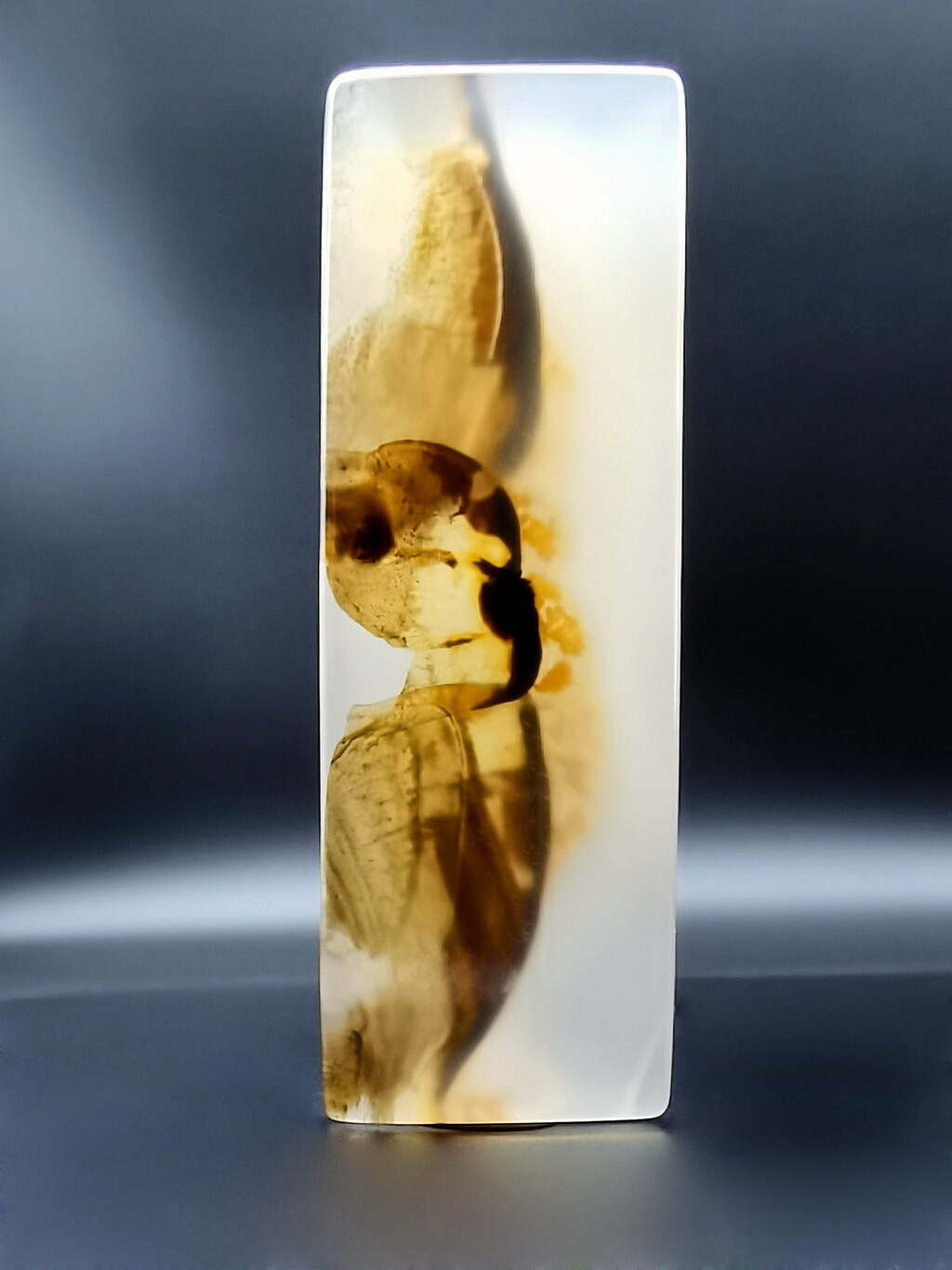 对集奇石、宝玉石于一身“海洋玉髓”的投资收藏价值进行研究,发表了《浅论海洋玉髓的鉴别与分类》、《奇石与美玉的文化传播者:海洋玉髓》等论文,并从宝石学角度研究其内部图案形成的原因,解开了学术界这一难题。