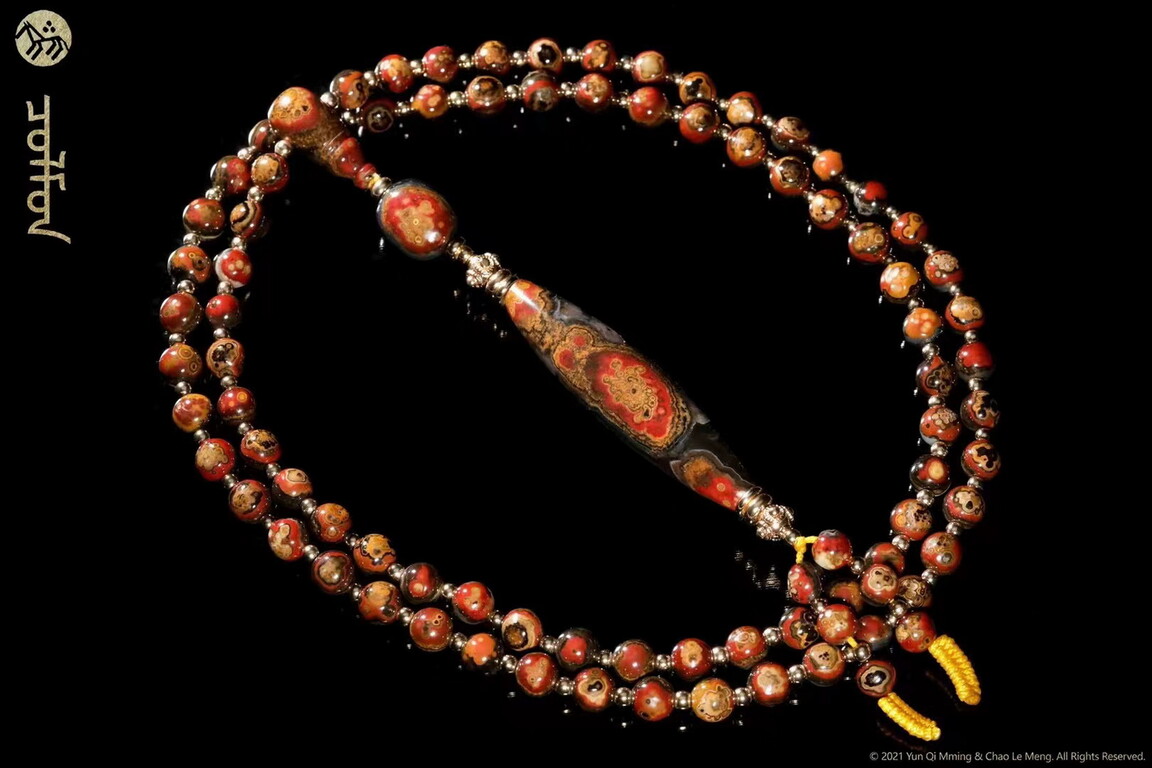 经日本科学家研究证实,九眼叶岩石老天珠主要含玉质成份在80%以上,以及少量的玛瑙成份和十四种火星元素,其中镱元素地球上没有,镱元素具有13伏特的天然宇宙磁场能量,硬度8.5莫氏,除南非钻石10莫氏外,没有比九眼叶岩石硬度更强的矿物质。