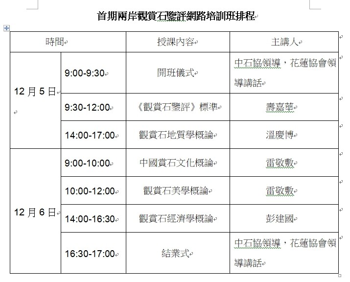 本线上硏习课程由中国观赏石协会主办,订於12/5-6(周六、日)二日举办(课程表之後附上)名额只有50位,首次两岸线上硏习机会难得: