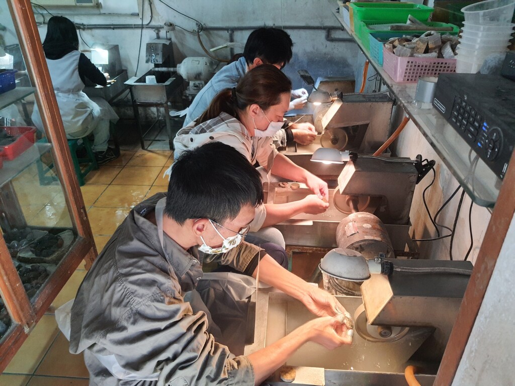 藉由玉石研磨人才培力课程,让学员充分了解玉石加工过程。课程从基础的取材、研磨及抛光,到玉石平面设计,最後再延伸到创意研磨等技能,让学员能学习完整的加工技术。