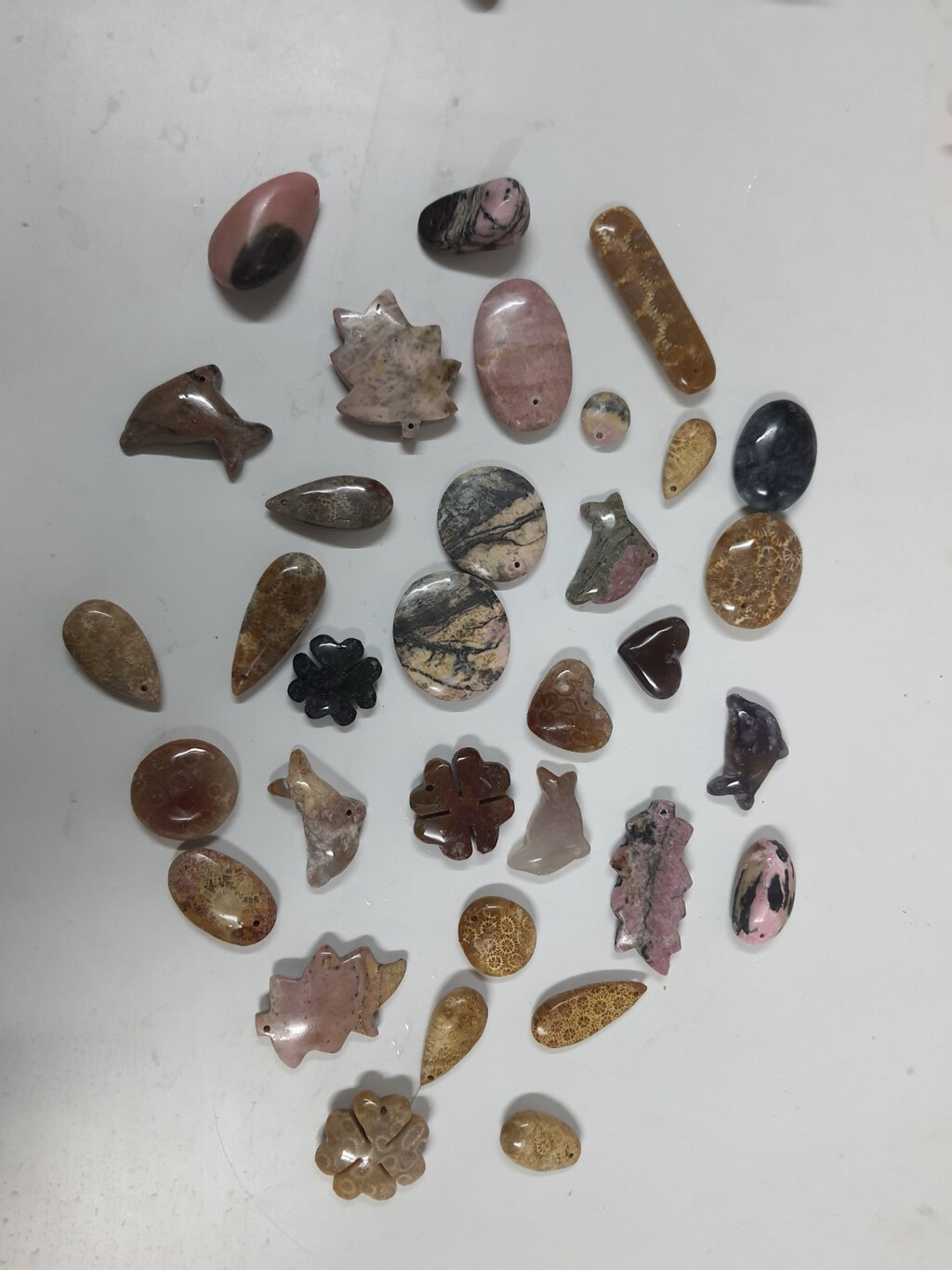 以玫瑰石、珊瑚玉、紫玉髓、雪花玉、墨玉等多元石材为基底,研磨项目如下: