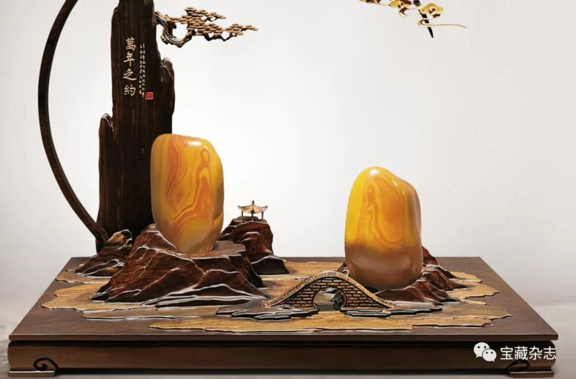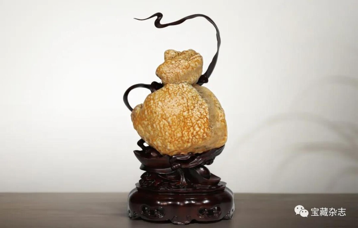 这时艺术构思的审美意象通过石体、台座、配件、陈设环境和命题、赋文、演示等艺术语言,以直观的形式——艺术作品表现,传达给公众。赏石艺术品也不再是原石那种自然存在的无意味的形式,而成为寄托创作者理想、观念、情感、趣味,承载创作者才智、能力、技巧的一种艺术形式。