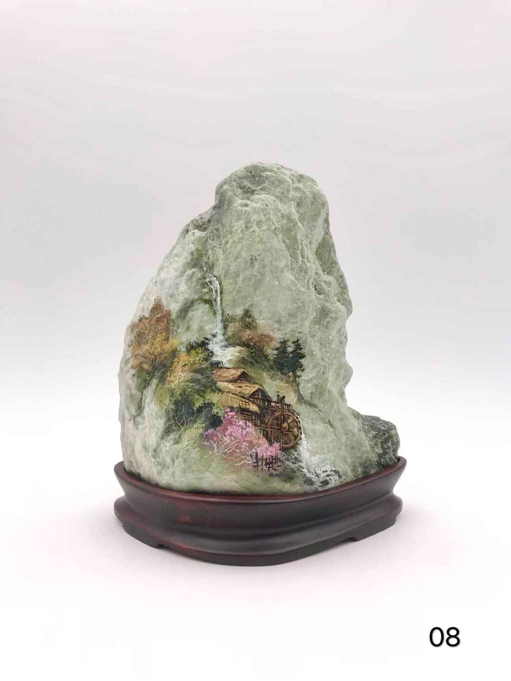 此作系由书画家林正义於台湾玉挥洒创作,利用原石本身的条件底色,赋予作品新的生命。桃花源中,遗世独立,问今是何世,乃不知有汉,无论魏晋。