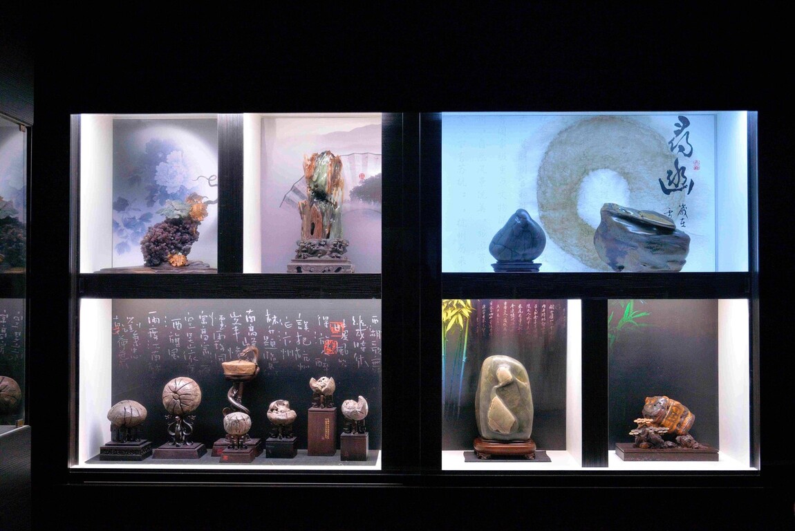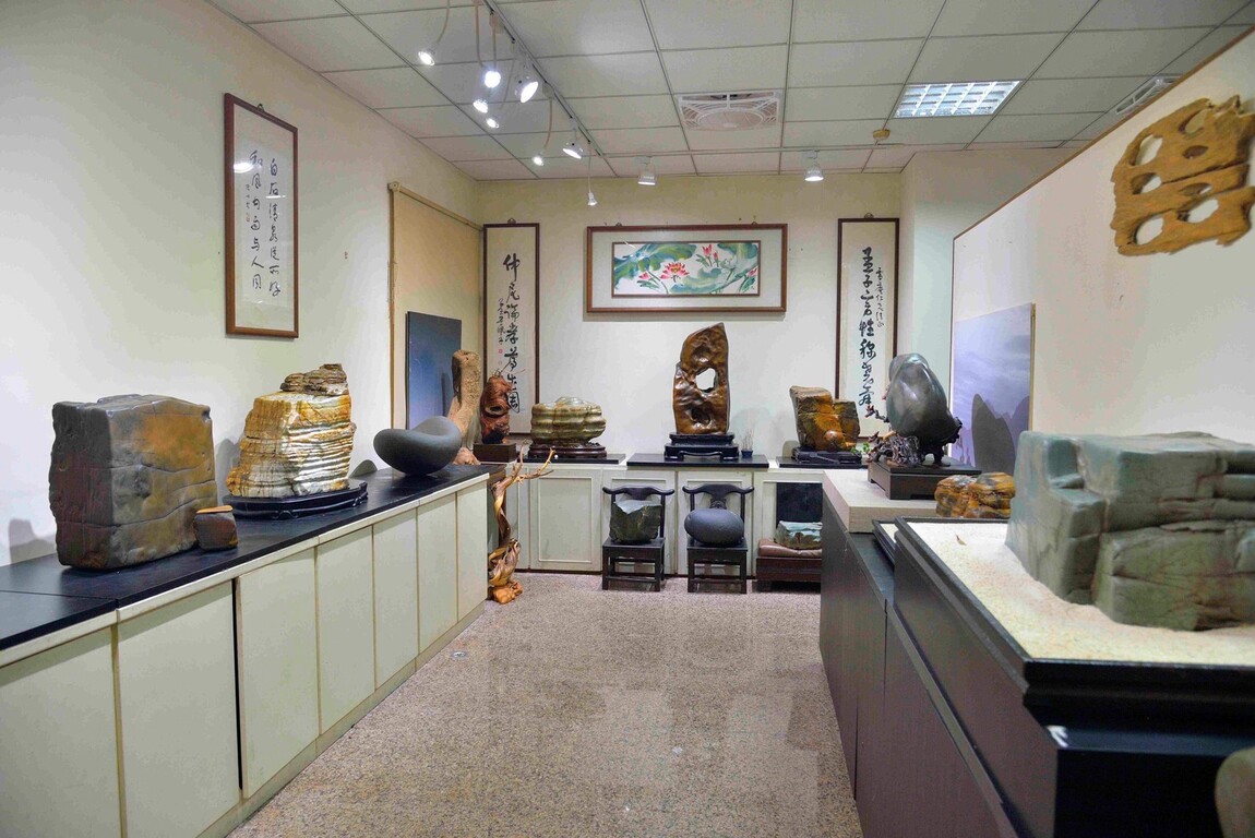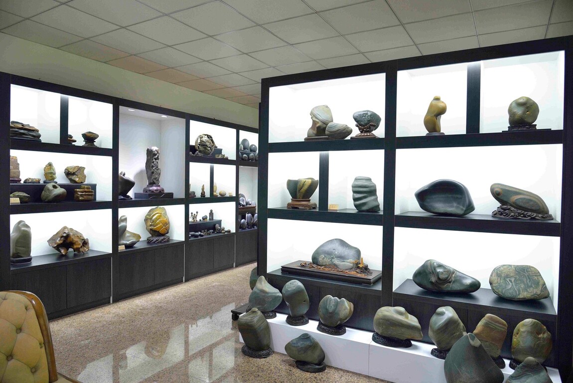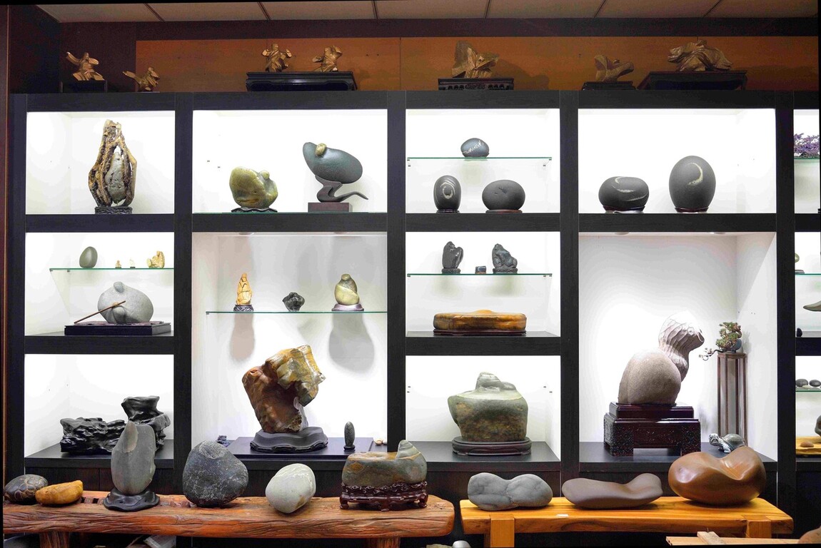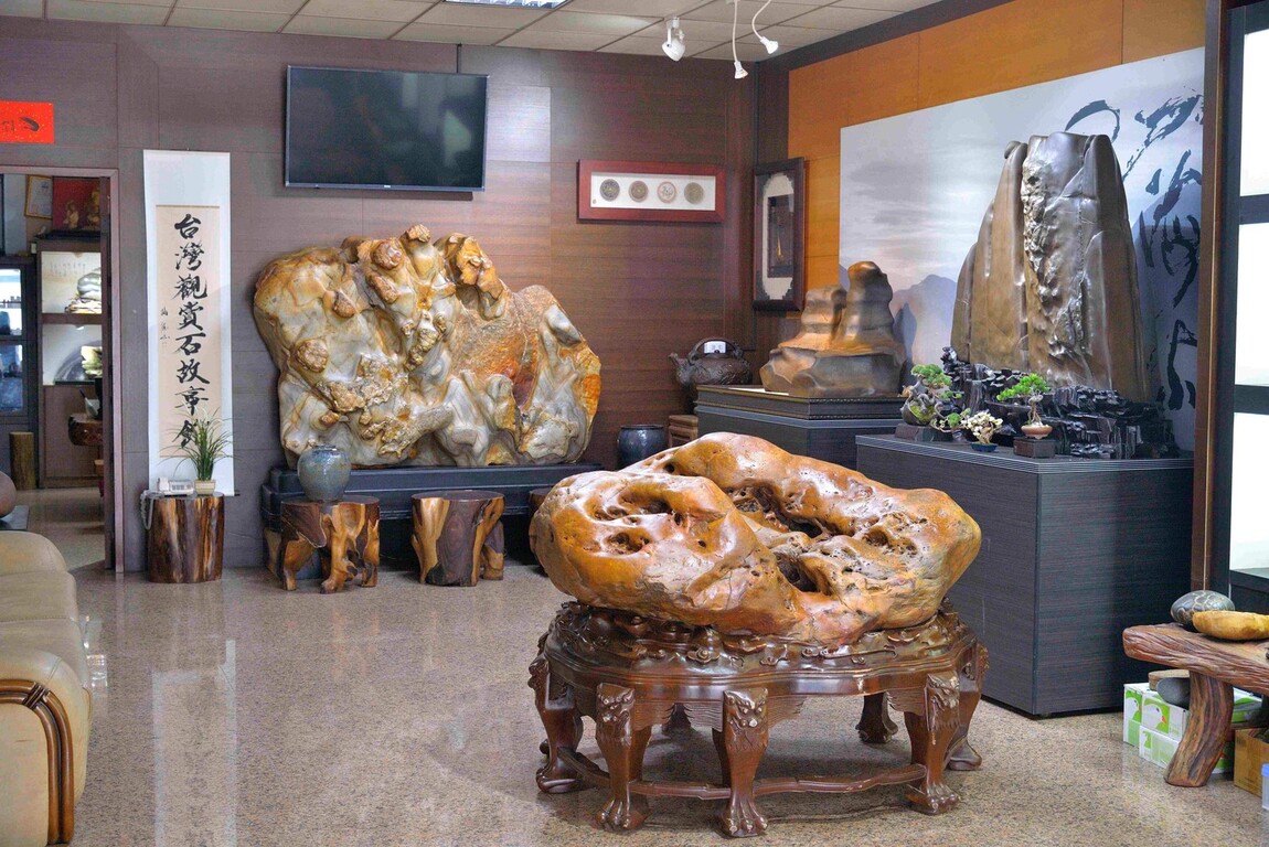 由於他在臺灣雅石界全盛期就已進入石界,也在早期就穿梭于兩岸石壇間尋石、交流,大進大出,收藏廣泛而多元,尤其在賞石藝術的研究與探討,有其卓見與成果。