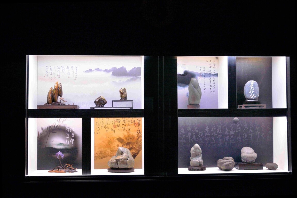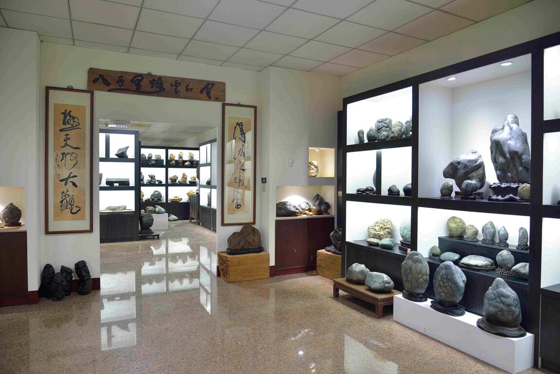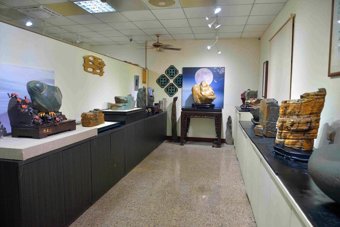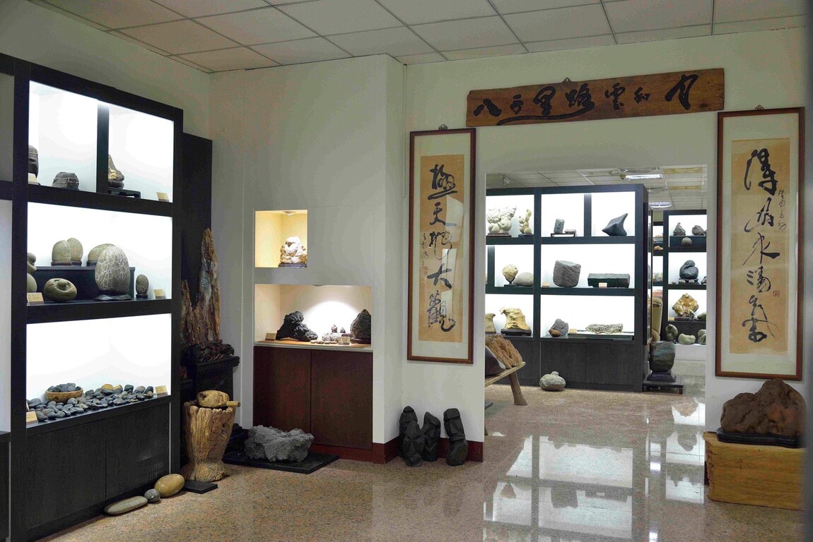 由於他在臺灣雅石界全盛期就已進入石界,也在早期就穿梭于兩岸石壇間尋石、交流,大進大出,收藏廣泛而多元,尤其在賞石藝術的研究與探討,有其卓見與成果。