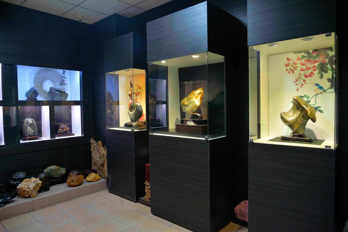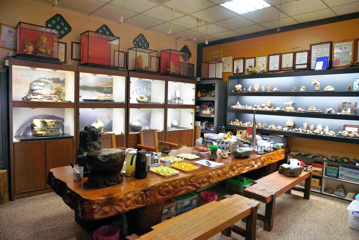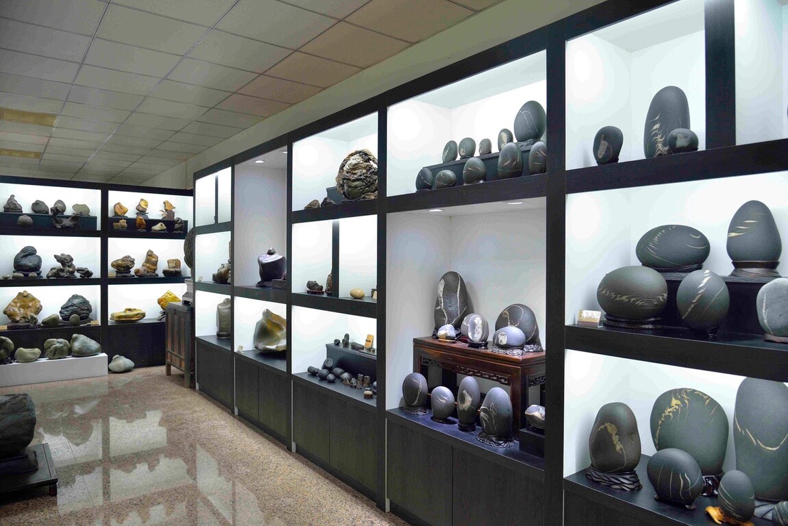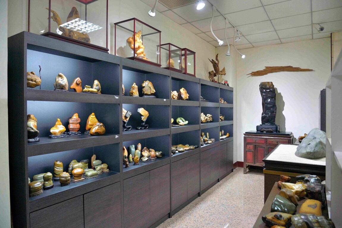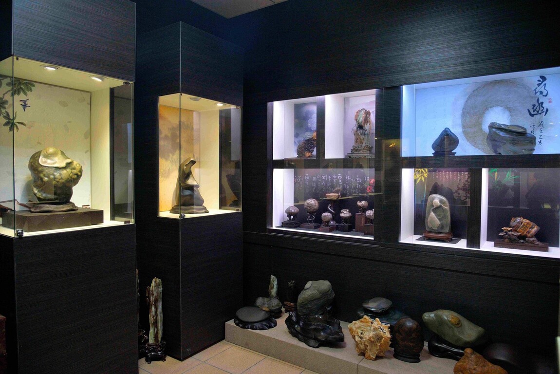 由於他在臺灣雅石界全盛期就已進入石界,也在早期就穿梭于兩岸石壇間尋石、交流,大進大出,收藏廣泛而多元,尤其在賞石藝術的研究與探討,有其卓見與成果。