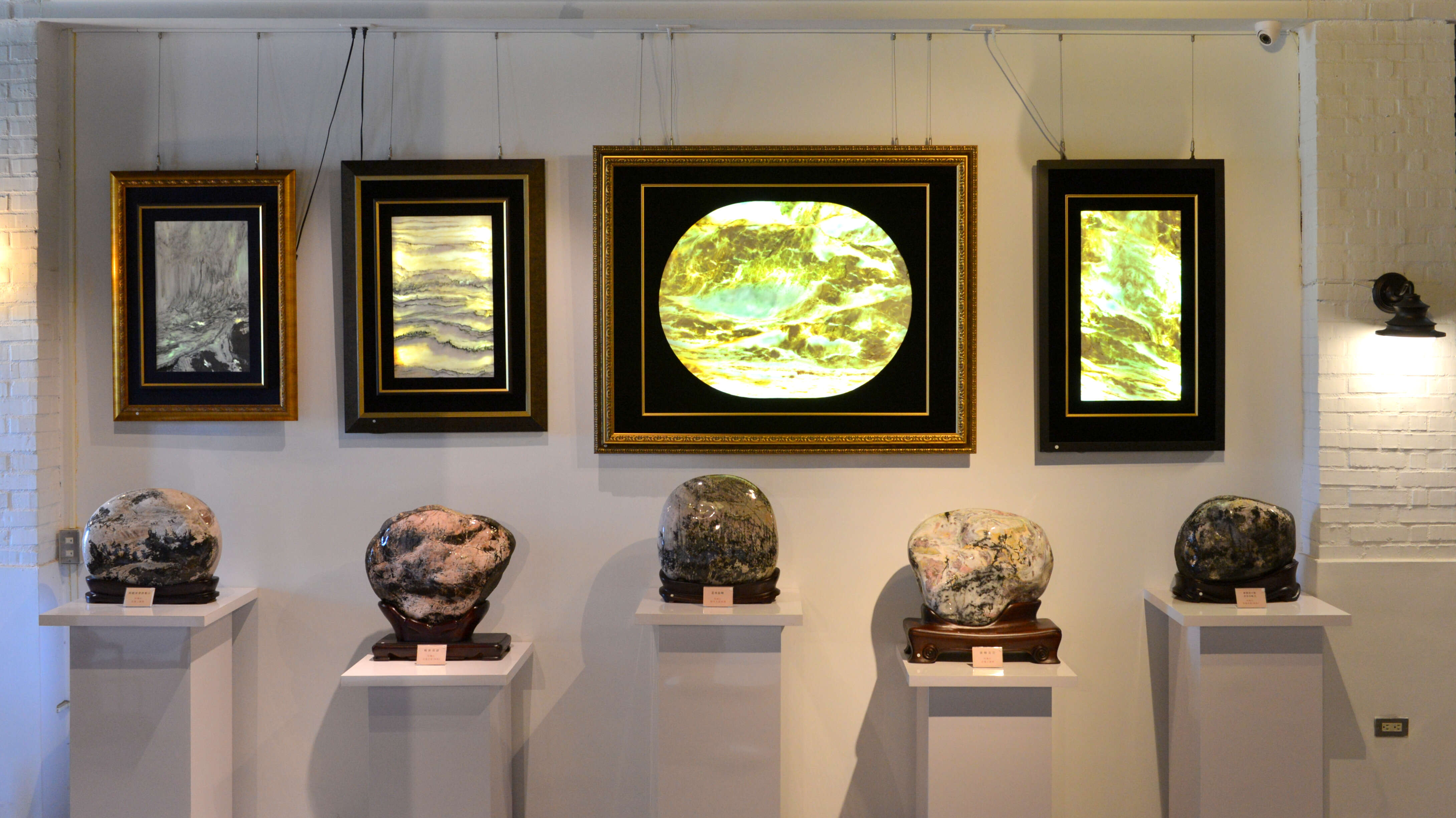 此外,曾律師亦在舘中展出他個人多年珍藏的精彩「光畫」,「光畫」緣於花蓮石友在玩石中偶然的發現,他們看到有些原來不見良景的石片,在透光之下竟放出艷麗的光彩,石友們驚嘆之餘,將之裱框成畫,光線穿透石片,映成色彩豐富的多層次山水意象,令人驚艶!