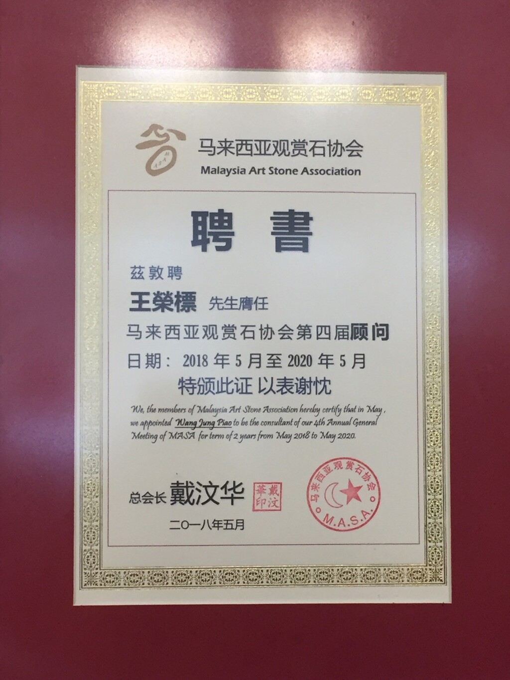 2018 擔任馬來西亞觀賞石協會顧問