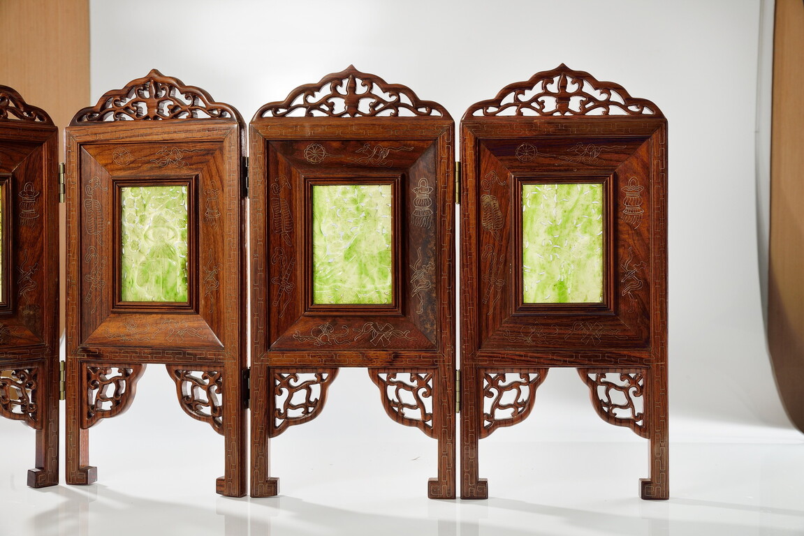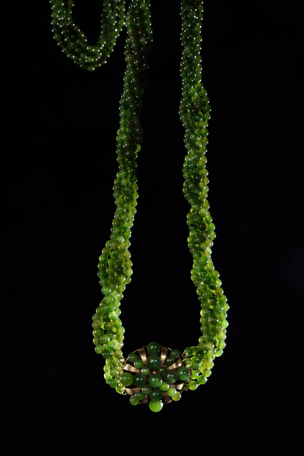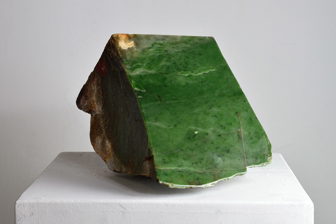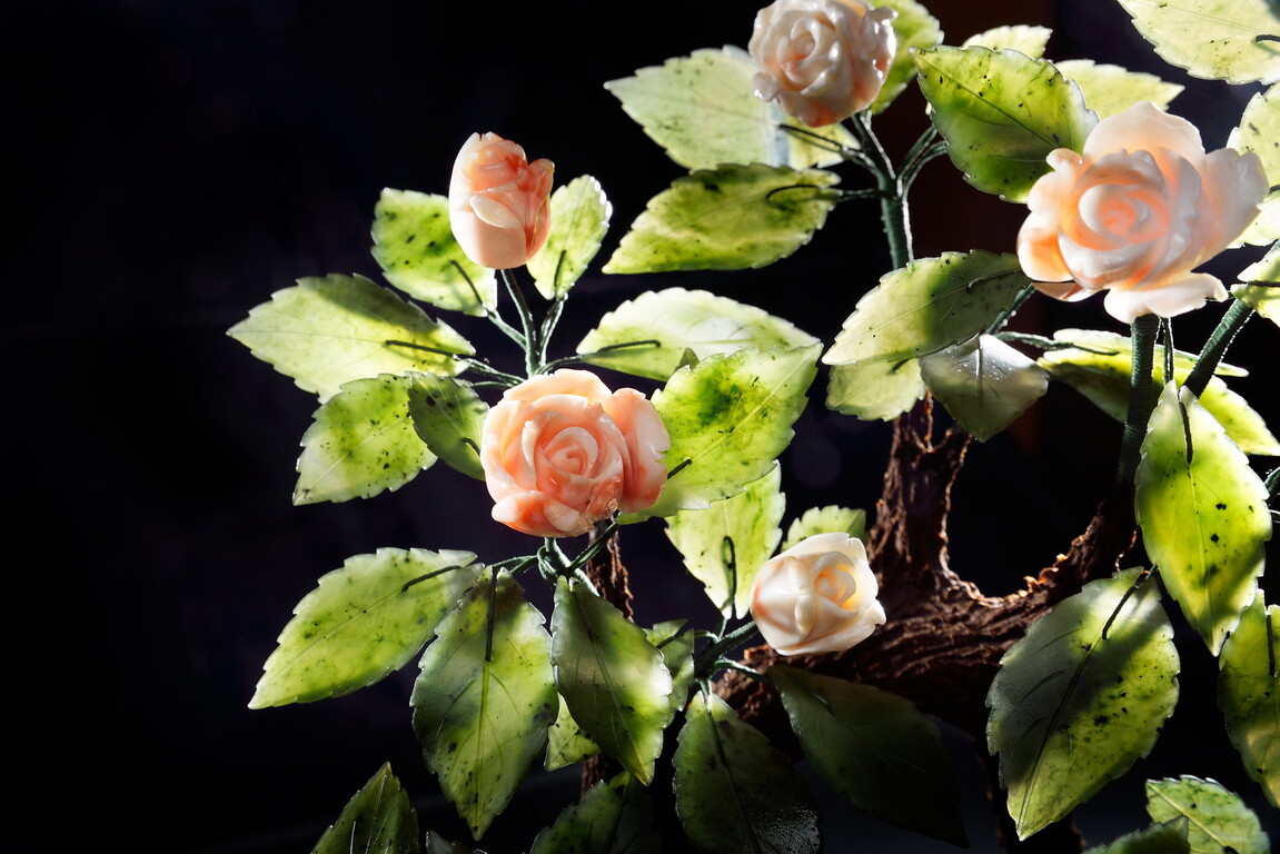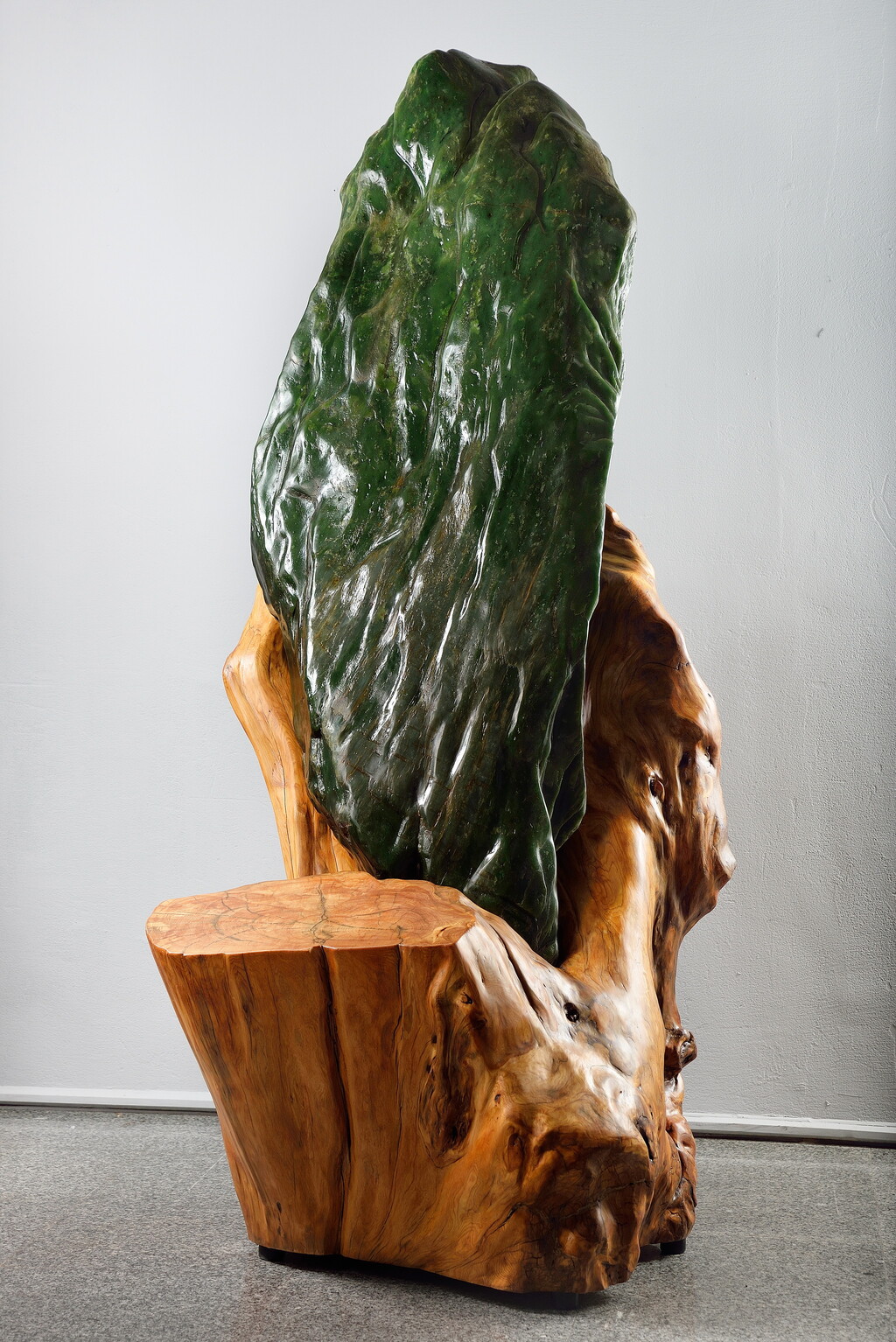 「翠玉」是台灣玉中最常見的,約佔七成以上,顏色翠綠且具透明性。因台灣玉較其他國家或地區的玉石更具韌性,才可雕塑如上作品之晶瑩、剔透、細緻。