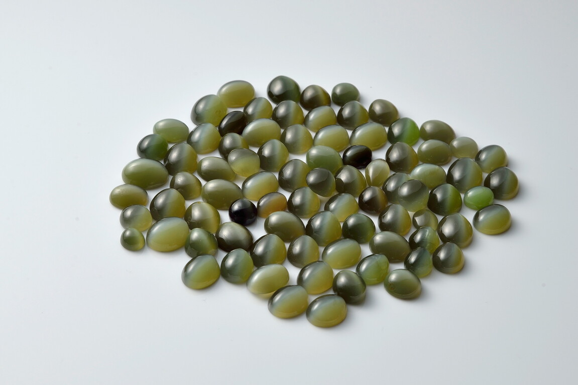 「貓眼玉」(會閃的玉)是最奇特的台灣玉。原礦經過拋光打磨後,加以正確的切割及精密的研磨,中間會出現宛如貓眼狀細長、閃亮的光芒。