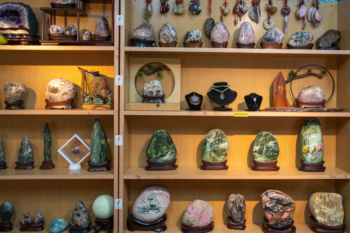 本店主要經營的項目有墜飾、雕件、原石,平面加工石種以玫瑰石、台灣玉、墨玉、珊瑚玉及東海岸玉石為主。