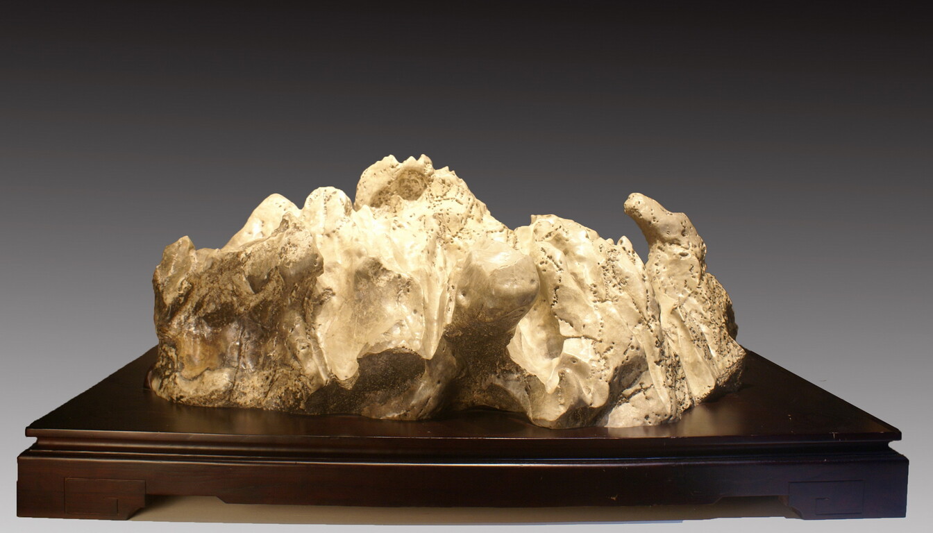 此方北丹石,石皮黃如玉,石肌形如脂,細膩中泛著光澤,山峰凹凸的顯跡,鑒證江山更替,日月沉浮。所謂“福如東海,壽比南山,神龜仰首,身披萬古。”。