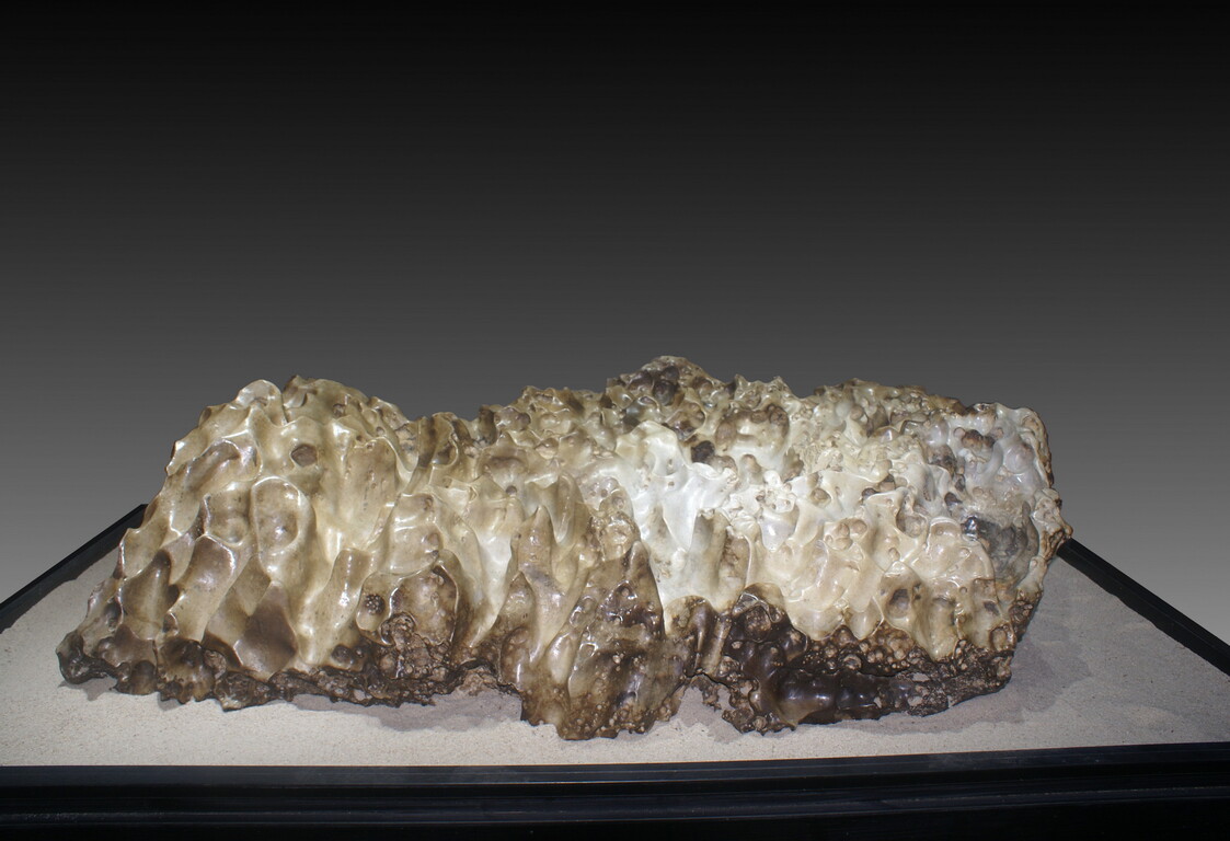 “橫看成嶺側成峰,遠近高低各不同”,這方"群峰競秀"不僅石質細膩,玉化度高,且色澤變化豐富!整塊巨石上千溝萬壑,宛如群峰,好似低谷,溪水潺潺,秀美山水爭天下。