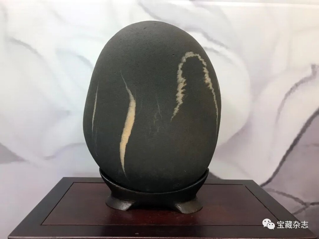 南田石素以黑底上有飄逸之白紋見長,若現人物,殊為難得。