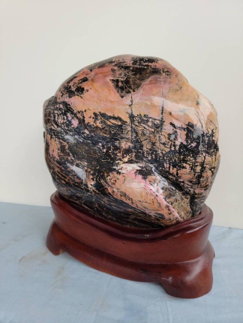 為臺灣出產之富含錳(因此帶有鮮豔粉紅色澤)的岩石俗稱,屬變質岩,並非單一礦物。主要由玫瑰色的薔薇輝石組成,歷經退化變質作用,其組成加入了棕黃、灰白色的錳輝石 /錳白雲石、粉紅色的菱錳礦、黑色的軟錳礦 /黑錳礦 /褐錳礦、白雲石、方解石、石榴子石、石英,甚至有時亦含有少量綠泥石、綠廉石及石綿等。