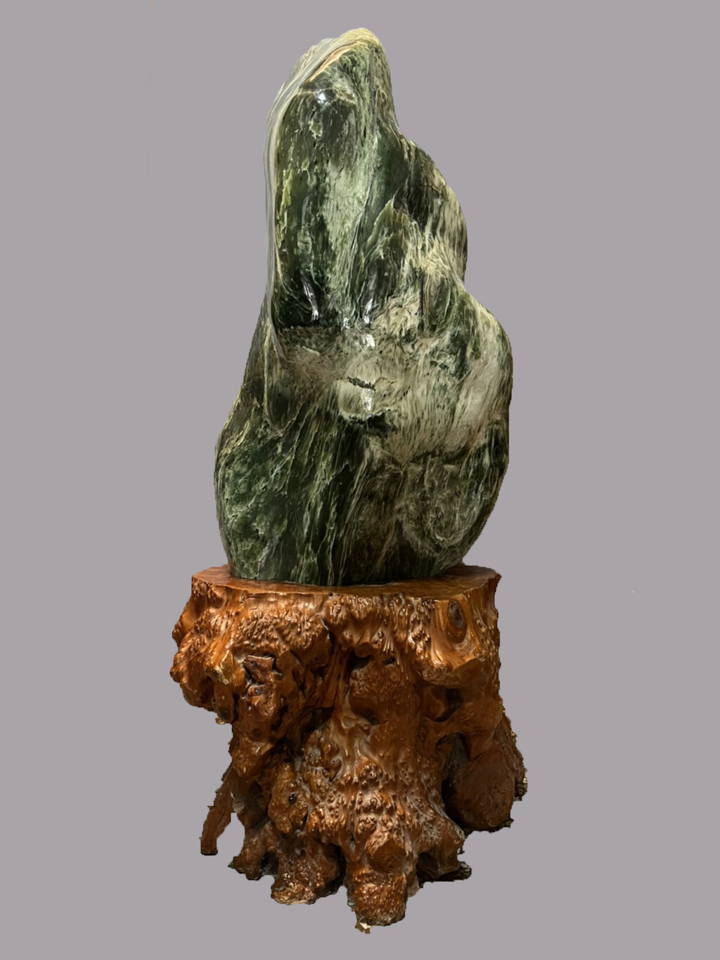花蓮因賞石風氣興盛,石友亦將台灣玉作為奇石賞玩,豐田玉的綠、石綿的白,以及蛇紋岩的墨綠,交織而成的特殊紋理,易投射成各種自然景緻。