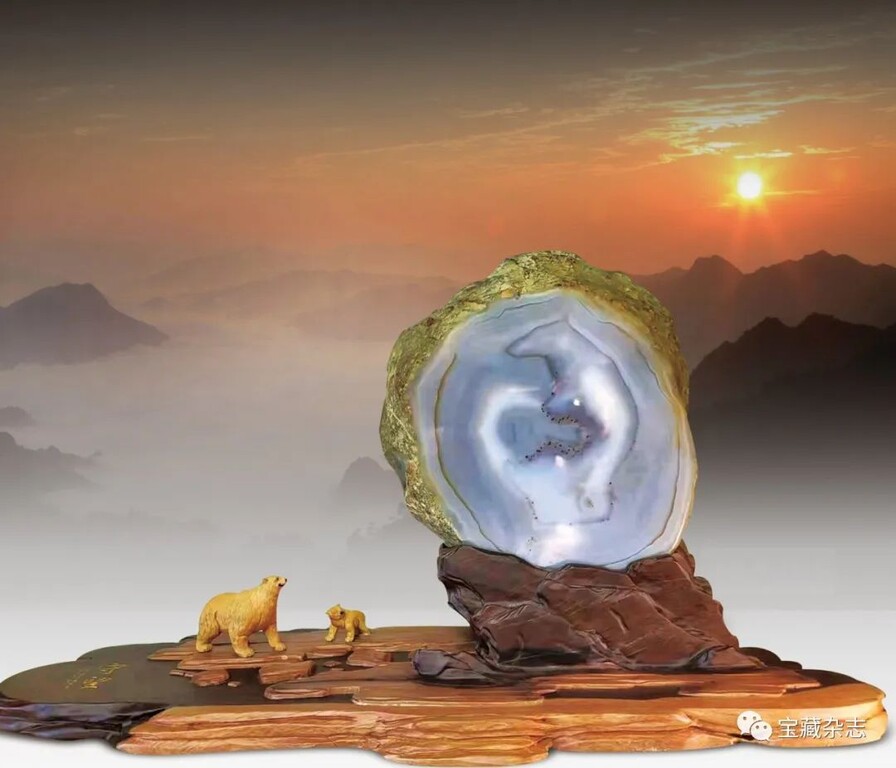 瑪瑙畫面石北極熊具象真石色差分明,紋理清晰,守望我們的家園不受人類