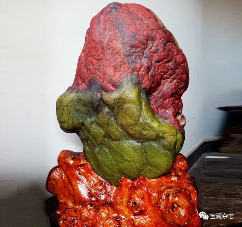 (鴻運當頭)這方嘉陵江彩石,是一方非常難得,純天然,紅,綠色的鴛鴦石,色彩比度明顯,紅色喜慶吉祥,綠色有生命力,上面的紅色部分顯得保盡了時代的倉傷感,而綠色的部分又顯得溫和安祥。