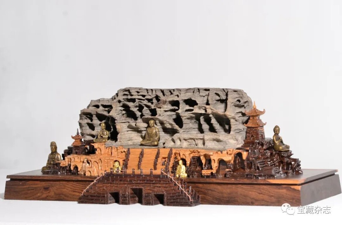 此方美石產自四川佛門聖地——峨眉山,本就是一種神聖的存在,它與佛教文化淵源匪淺。它在天地孕育造化中以神奇的天工,巧妙的構造出了與遠在千里之外人為雕鑿的龍門石窟如出一轍的神似!無不讓人驚歎大自然的鬼斧神工。從外形看,此方美石整體形狀呈平行長方體,兩面平整。神似洛陽的龍門山山體被利刃神器一刀切成。正面大大小小的洞窟錯落有致,放眼望去猶如身臨其境,仿佛你正站在伊河東岸注目於西山石窟群,一窟一龕,尊尊佛像都能映入眼簾。能令人頓感虔誠慈悲,發願禮拜。此方美石古樸而又大氣,端莊而又威嚴,散發著濃濃的歷史文化氣息,古色古香。能讓浮躁的心歸於寧靜,城市的喧囂浮華,爾慮我詐,生活和工作的繁雜瑣事都如一縷煙塵般消散無痕。