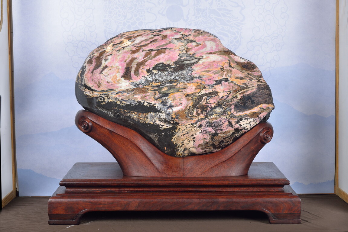 為臺灣出產之富含錳(因此帶有鮮豔粉紅色澤)的岩石俗稱,屬變質岩,並非單一礦物。主要由玫瑰色的薔薇輝石組成,歷經退化變質作用,其組成加入了棕黃、灰白色的錳輝石 /錳白雲石、粉紅色的菱錳礦、黑色的軟錳礦 /黑錳礦 /褐錳礦、白雲石、方解石、石榴子石、石英,甚至有時亦含有少量綠泥石、綠廉石及石綿等。