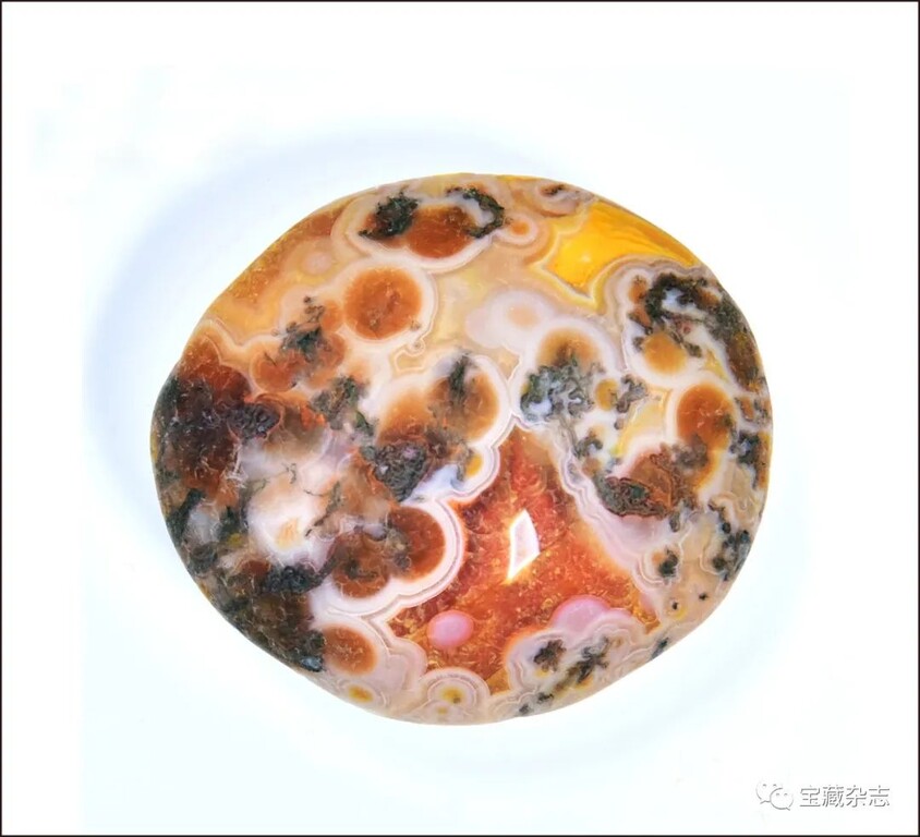 整體畫面由紅、黃、白及暗綠多色組成,色彩的絲紋勾畫出圓圓的圖形,確相似秋收的季節,碩果累累。