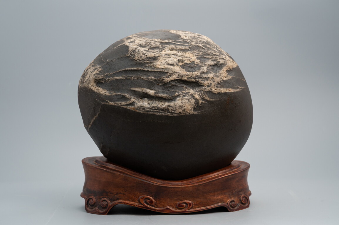 欣賞圖案石,除了石頭質地的基本條件外,圖案與石頭尺寸間應有合適比例;圖案與石頭形狀需有和諧之態;不同形態的圖案應出現在合宜的構圖位置,如此方能呈現整體美感。